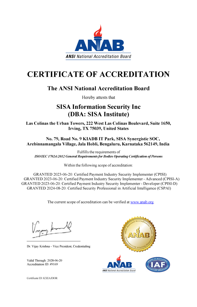 World’s First ANAB-accredited AI security certification program Certified Security Professional in Artificial Intelligence (CSPAI)